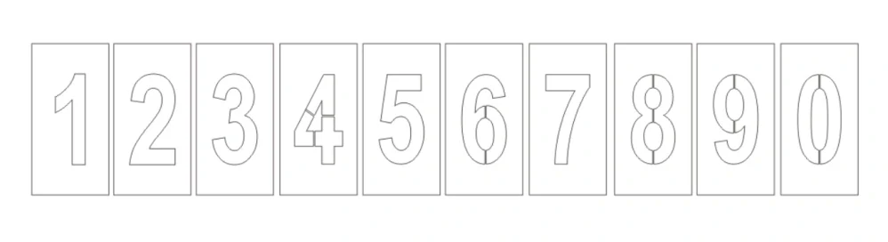 Šablona pro nástřík VDZ - číslice 0,1,2,3,4,5,6,7,8,9 - celá série