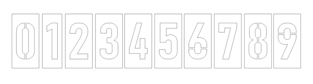 Šablona pro nástřík VDZ - číslice 0,1,2,3,4,5,6,7,8,9 - celá série